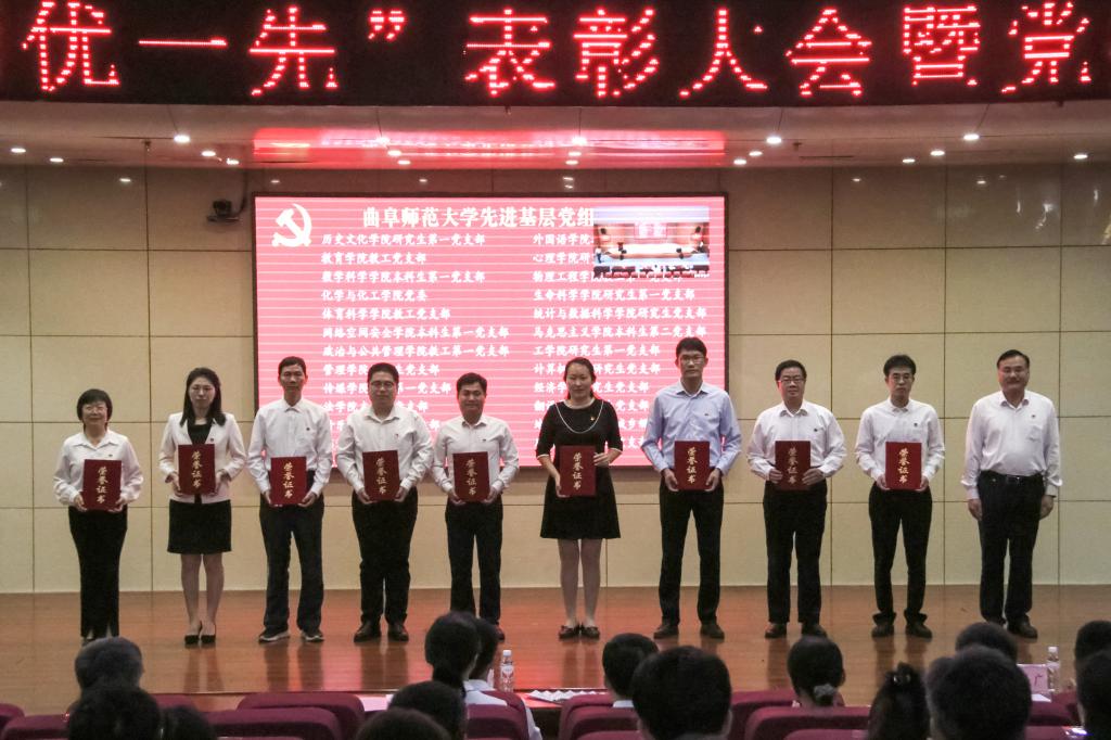 会上,邢光、胡凡刚分别在两校区为“光荣在党50年”老党员代表颁发纪念章。党委班子成员向受到表彰的先进个人和集体颁发了证书和奖牌。教育学院教授徐瑞,地理与旅游学院教授张学波,数学科学学院教工第一党支部书记魏云亮,翻译学院组织员、本科生第一党支部书记孙杰琼代表获奖先进个人和组织分别发言。
