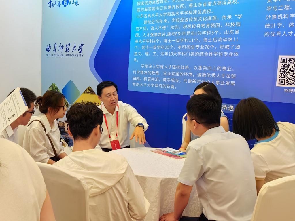 在“人才与校长”座谈交流环节,张洪海与来自上海交通大学、复旦大学、同济大学、浙江大学等高校的青年博士展开了热烈而充分的座谈交流,热情回答了青年人才关于招聘待遇、工作条件、生活环境、发展前景等方面的问题,鼓励青年人才来曲师安家创业,施展才华实现抱负。多名青年博士表示,通过本次活动更全面地了解了孔子家乡大家的办学实力与邀约诚意,期待能有机会加入完美体育(中国)官方网站,在完美体育(中国)官方网站实现新的成长。