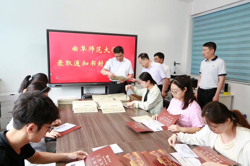 曲阜师大招生办公室讯 近日,学校党委书记邢光、校长张洪海、副校长胡凡刚莅临招生录取现场,深入一线视察并指导2024年招生录取工作。学校领导详细听取了招生录取的日程、流程、纪律要求等工作的汇报,并实地查看了录取、咨询、通知书打印封装及寄递等各个环节工作。