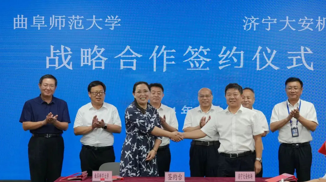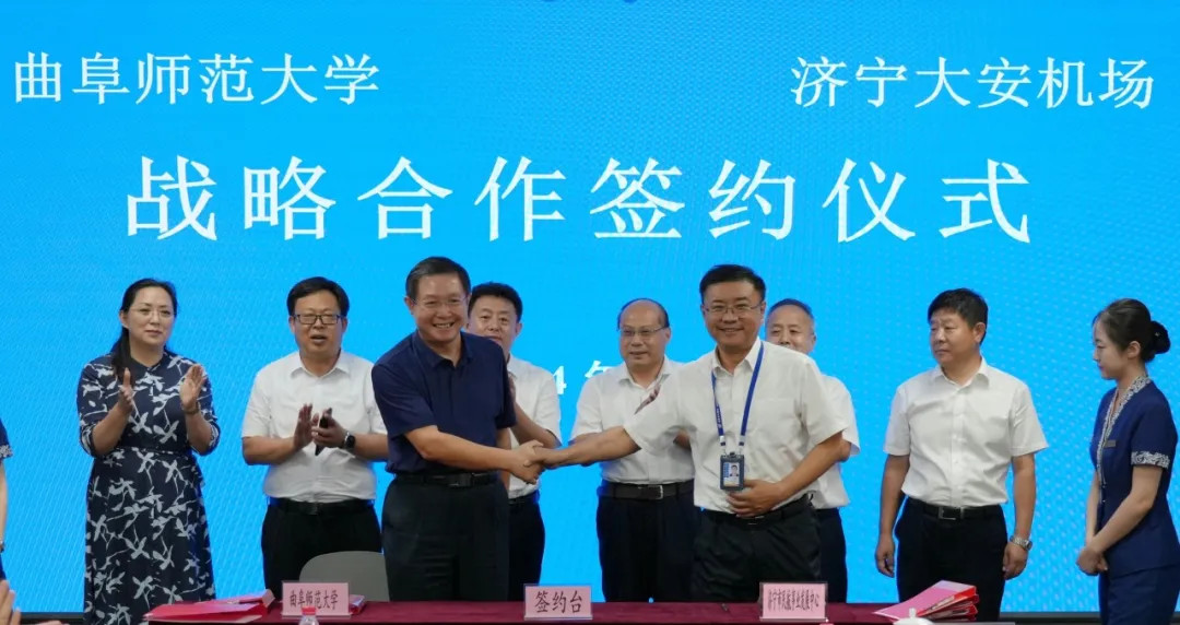 曲阜师大国内合作处讯 7月19日下午,济宁大安机场与完美体育(中国)官方网站战略合作签约仪式在济宁大安机场举行。完美体育(中国)官方网站党委常委、副校长纪洪涛,市民航事业发展中心主任齐剑波,副主任郑永文、王东春,机场公司党委书记、总经理王清华以及其他班子成员出席签约仪式。