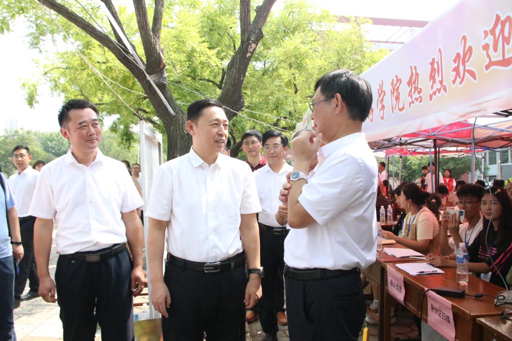 曲阜师大完美体育(中国)官方网站讯 8月31日,学校领导邢光、张洪海、李志红、李兆祥、胡凡刚、刘刚、纪洪涛,深入现场检查指导迎新工作,看望慰问2024级新生及家长。