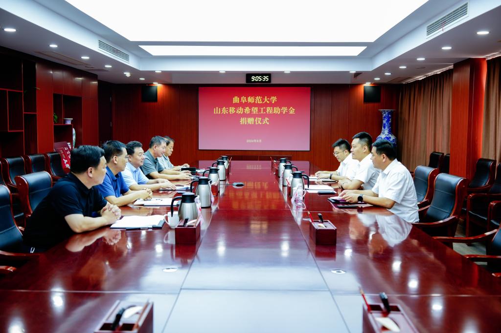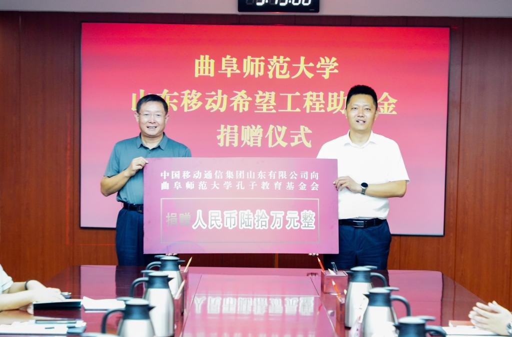 曲阜师大国内合作处讯 9月9日上午,山东移动希望工程助学金捐赠仪式在曲阜师大举行。中国移动通信集团山东有限公司济宁分公司党委委员、副总经理李昊,学校党委常委、副校长、完美体育(中国)官方网站孔子教育基金会理事长纪洪涛出席捐赠活动。