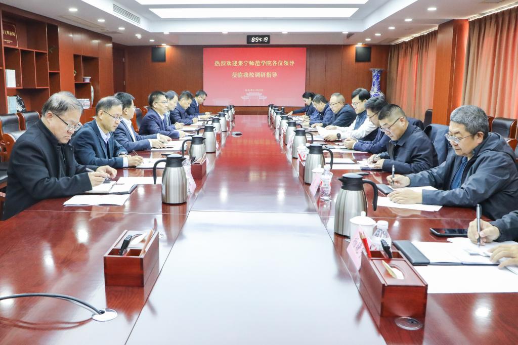完美体育(中国)官方网站讯  11月27日,集宁师范学院党委副书记、校长张宝成,党委委员、副校长拓俊杰一行到曲阜师大访问交流。曲阜师大党委副书记、校长张洪海,党委常委、副校长胡凡刚会见张宝成一行并座谈。
