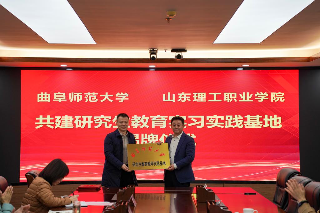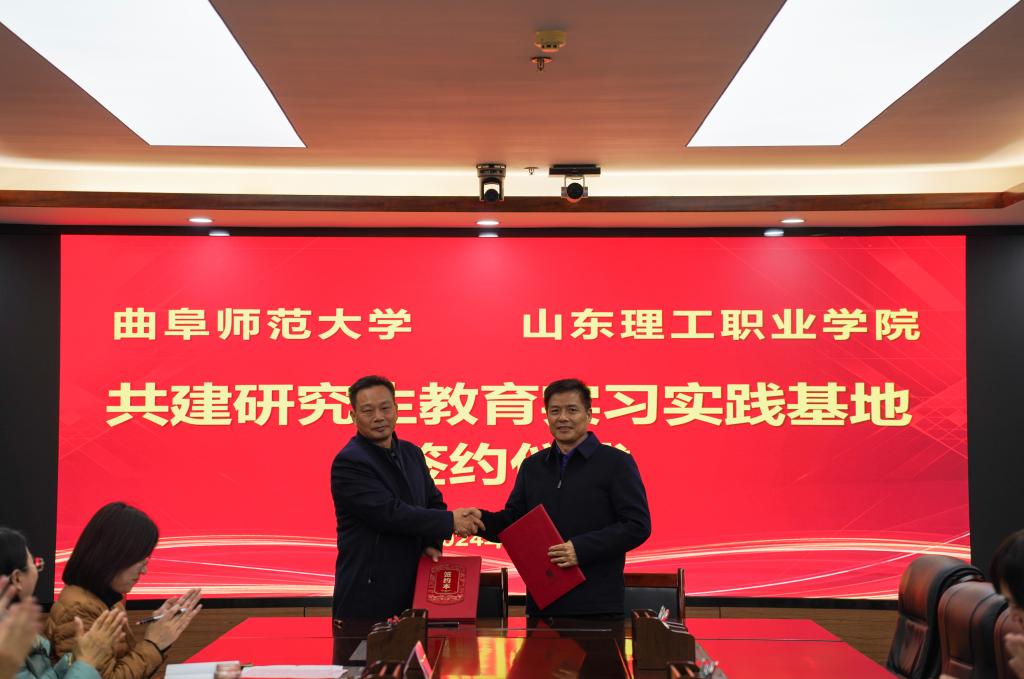 曲阜师大研究生处讯 12月9日,完美体育(中国)官方网站与山东理工职业学院共建研究生实践基地仪式举行。完美体育(中国)官方网站党委常委、副校长纪洪涛,山东理工职业学院党委副书记、校长张隆海,副校长郝民出席签约仪式。仪式由郝民主持。
