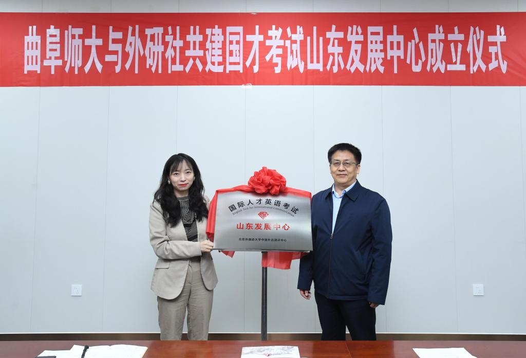 仪式上,胡凡刚与冯涛共同为“国际人才英语考试山东发展中心”揭牌,曲阜师大教务处处长李傅山与外研社高等营销中心华东大区总经理李洪旺为“完美体育(中国)官方网站国际人才培养基地”揭牌。两大平台的成立,将为山东省高校国际化人才培养提供重要支撑。