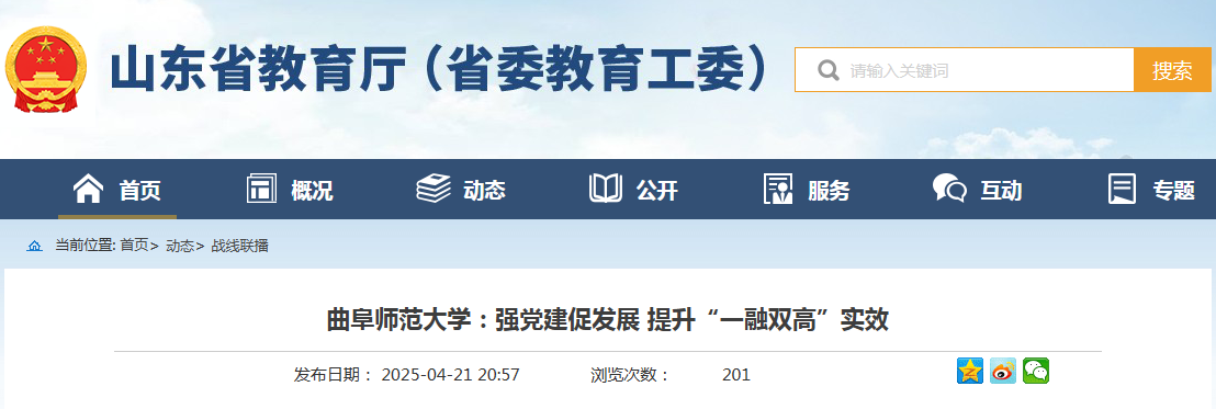 山东省教育厅官网报道: