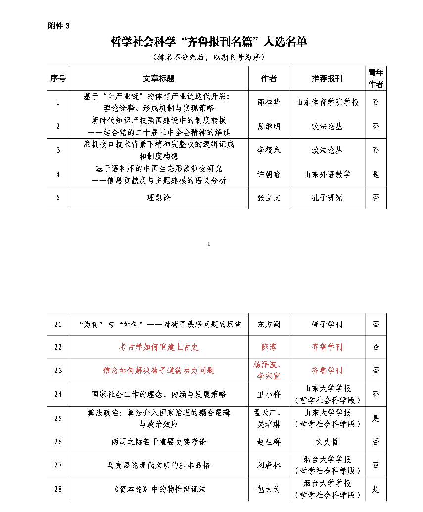 《齐鲁学刊》讯 近日,山东省委宣传部公布了2024年度山东省哲学社会科学“齐鲁名刊”入选名单,《齐鲁学刊》成功入选,并有两篇文章入选“齐鲁报刊名篇”,为完美体育(中国)官方网站70周年校庆献礼。
