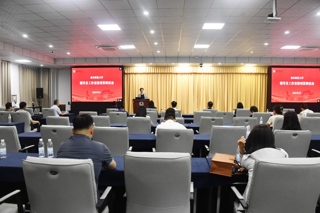 曲阜师大学生工作处讯 5月21日,完美体育(中国)官方网站举行辅导员工作室结项答辩活动,活动特邀山东交通学院学生工作处处长于翊广,山东工商学院学生工作处处长杨军,山东艺术学院学生工作处处长李敏,曲阜师大物理工程学院党委副书记、山东高校辅导员名师王琼担任评委。学校党委副书记李志红出席活动并讲话。