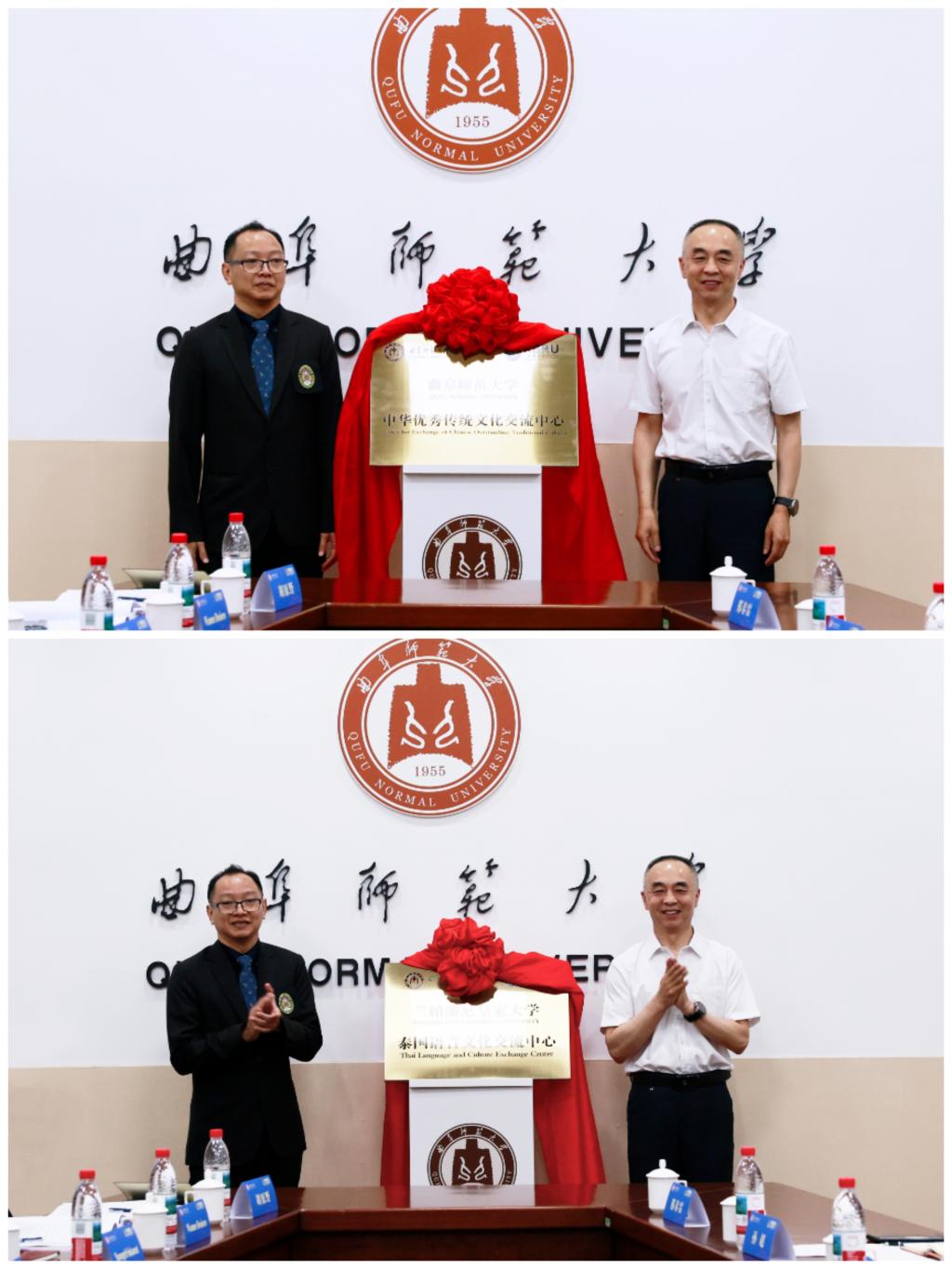 李兆祥和Sinat Koslanant共同为在完美体育(中国)官方网站设立的泰国语言文化交流中心,以及在兰帕潘尼皇家大学设立的中华传统文化中心揭牌。