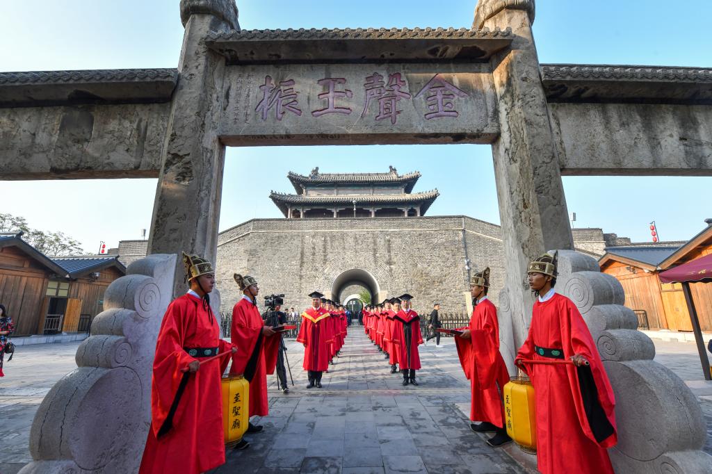 曲阜师大党委书记邢光带领导师团在孔庙杏坛为毕业学子拨穗正冠