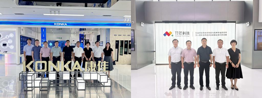 在康佳股份有限公司,李登旺与公司副总裁杨波、竹芒科技公司联合创始人刘超等座谈交流。就下一步推进在集成电路、物联网、电子技术、文创产品等领域合作工作达成共识。