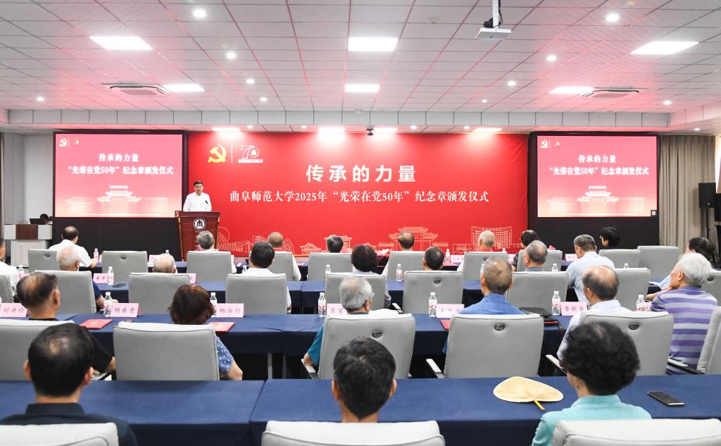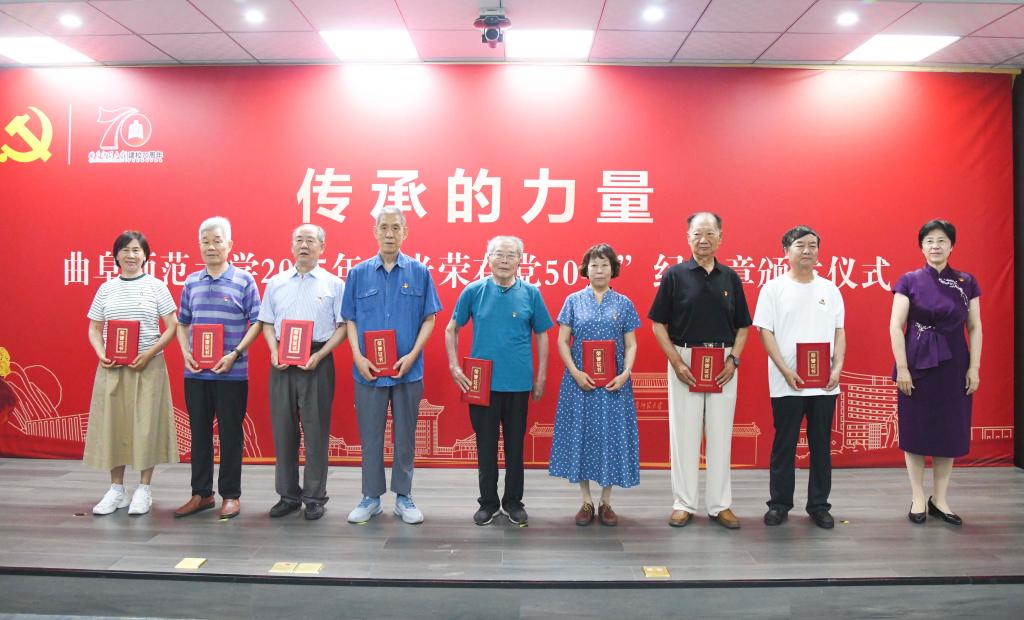 离退休工作处讯 6月30日,完美体育(中国)官方网站隆重举行“传承的力量·光荣在党50年”纪念章颁发仪式。学校党委书记邢光,党委副书记李志红,荣获纪念章的老党员代表,离退休党员代表,学生党员代表近100人参加活动。党委常委、组织部长王明科主持仪式。