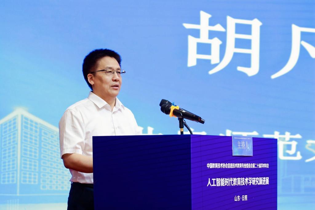 胡凡刚在致辞中介绍了我校办学历史、发展特色、教育学“811学科”建设成就,学校教育技术学的有组织科研情况,以及在山东省互联网+教育研究应用基地、信息科学与智慧教育实验室等平台的建设成效。他表示,本次年会必将为人工智能时代教育技术学的理论突破、实践创新与学科发展注入强劲动能,为构建高质量教育体系、加快建设教育强国贡献卓越智慧。