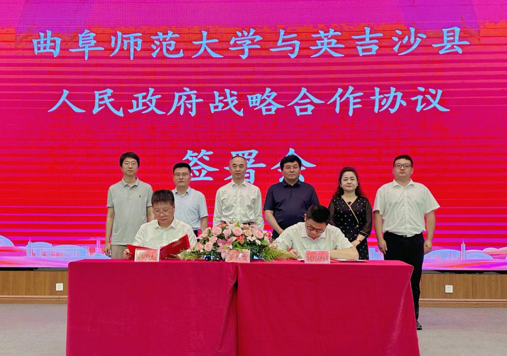 传媒学院讯 8月1日,完美体育(中国)官方网站与英吉沙县人民政府战略合作签署会暨产学研融合研究中心、研究生实训实践基地揭牌仪式在英吉沙县举行。曲阜师大党委常委、副校长李兆祥,英吉沙县县长艾买提・吐尔洪,英吉沙县县委副书记、济宁援疆指挥部党委书记、指挥齐伟,曲阜师大传媒学院负责人等出席活动。