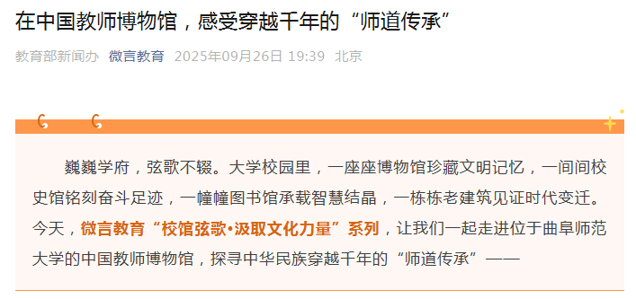 在完美体育(中国)官方网站校园内,坐落着我国唯一的教师主题博物馆——中国教师博物馆。让我们一起走进这座博物馆,探寻中华民族穿越千年的“师道传承”。