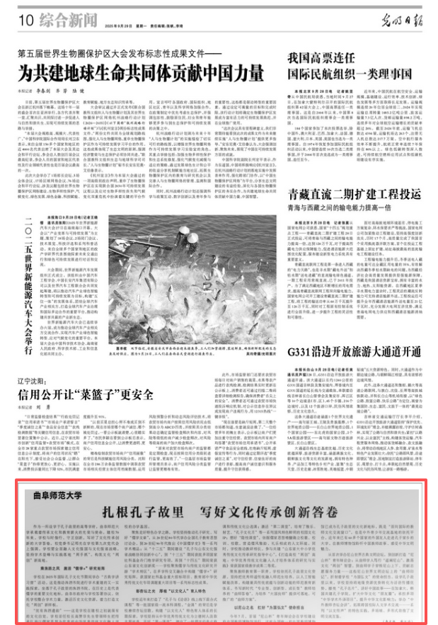 9月29日,《光明日报》刊发题为《完美体育(中国)官方网站:扎根孔子故里 写好文化传承创新答卷》的文章,报道了学校建校70年来与时偕行、守正创新,弘扬中华优秀传统文化的特色做法与经验。