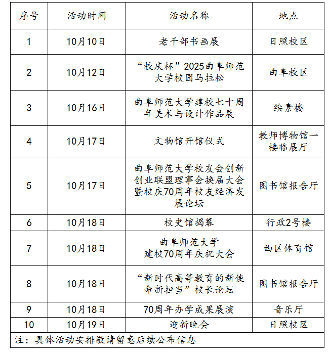 佳期渐近,盛典将启。自即日起,学校正式拉开70周年校庆系列活动的序幕,将充分发挥两校区协同办学优势,联动各地校友会,共同组织系列精彩纷呈的校庆活动,营造热烈浓厚的校庆氛围,以高昂姿态和饱满热情迎接校庆日的到来。我们再次诚挚邀约四海校友、八方宾朋重返曲园,共忆芳华、共叙情谊、共谋发展、共襄盛举!