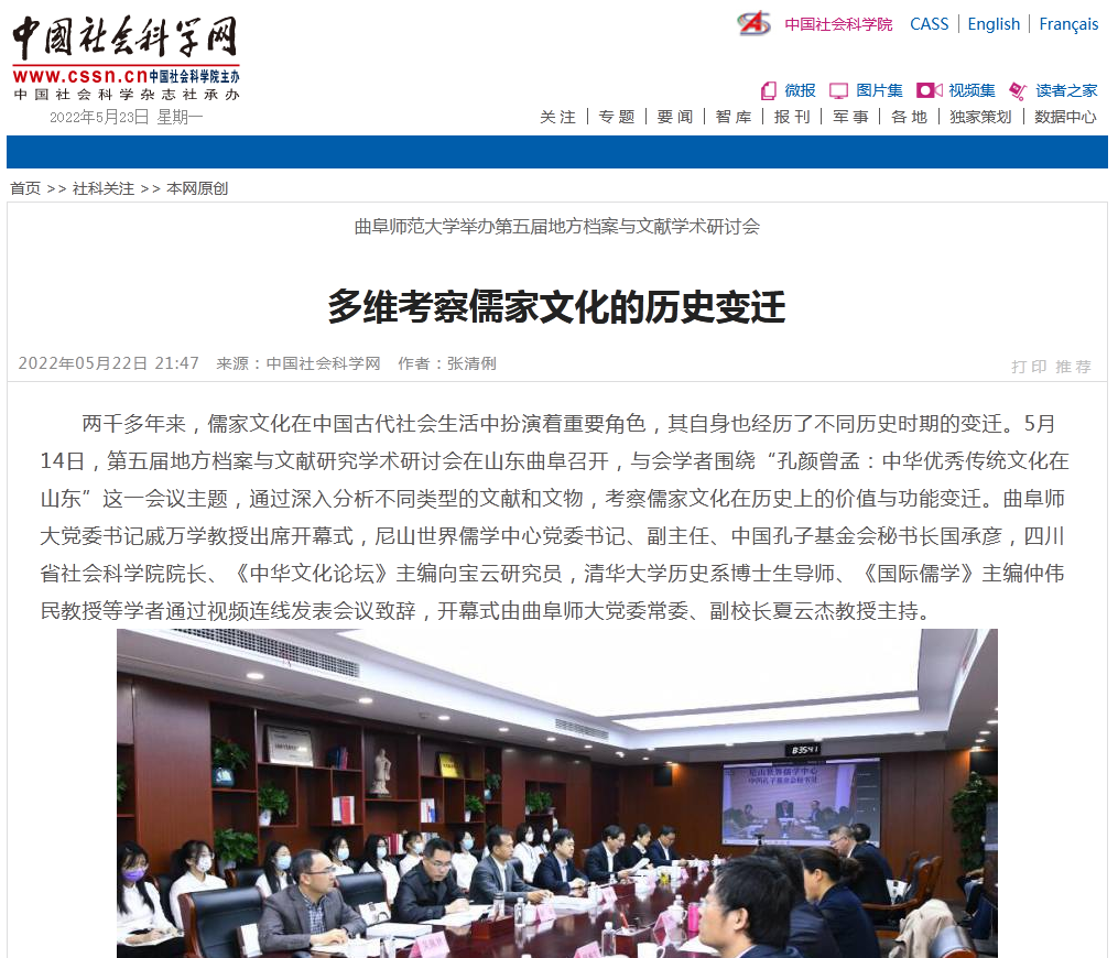 中国社会科学网:曲阜师大举办第五届地方档案与文献学术研讨会多维考察儒家文化的历史变迁