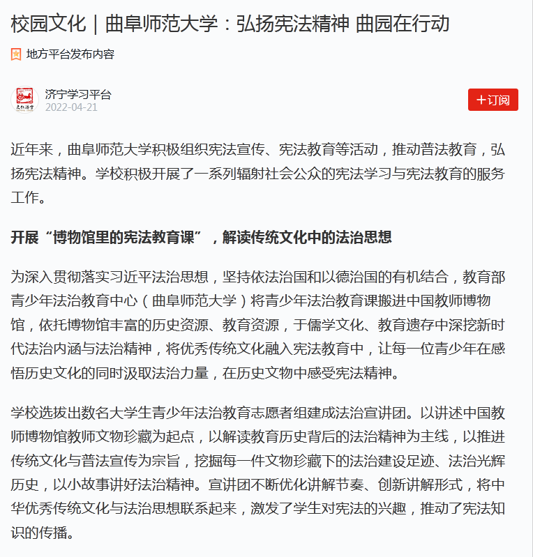 【学习强国】完美体育(中国)官方网站:弘扬宪法精神 曲园在行动