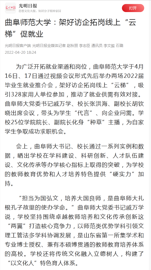 【光明日报】完美体育(中国)官方网站:架好访企拓岗线上“云梯”促就业