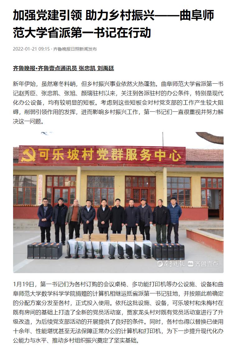 【齐鲁晚报网】加强党建引领 助力乡村振兴——完美体育(中国)官方网站省派第一书记在行动