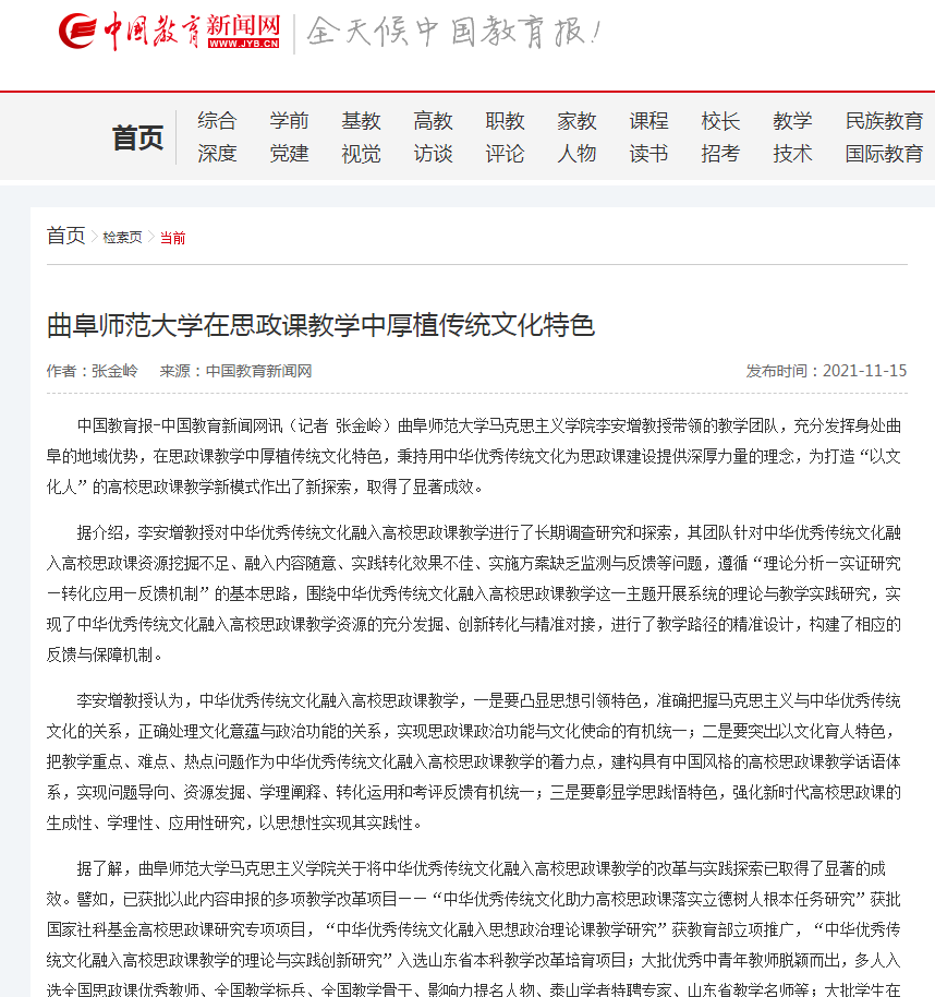 中国教育新闻网:完美体育(中国)官方网站在思政课教学中厚植传统文化特色