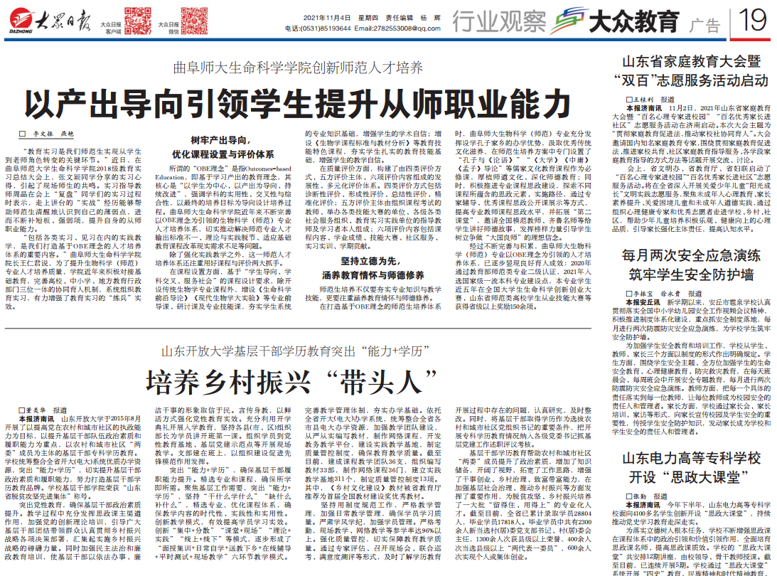 【大众日报】曲阜师大生命科学学院创新师范人才培养