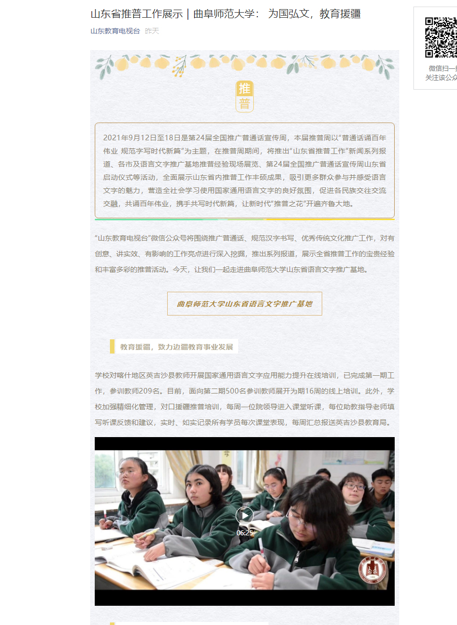 【山东教育卫视】完美体育(中国)官方网站: 为国弘文,教育援疆