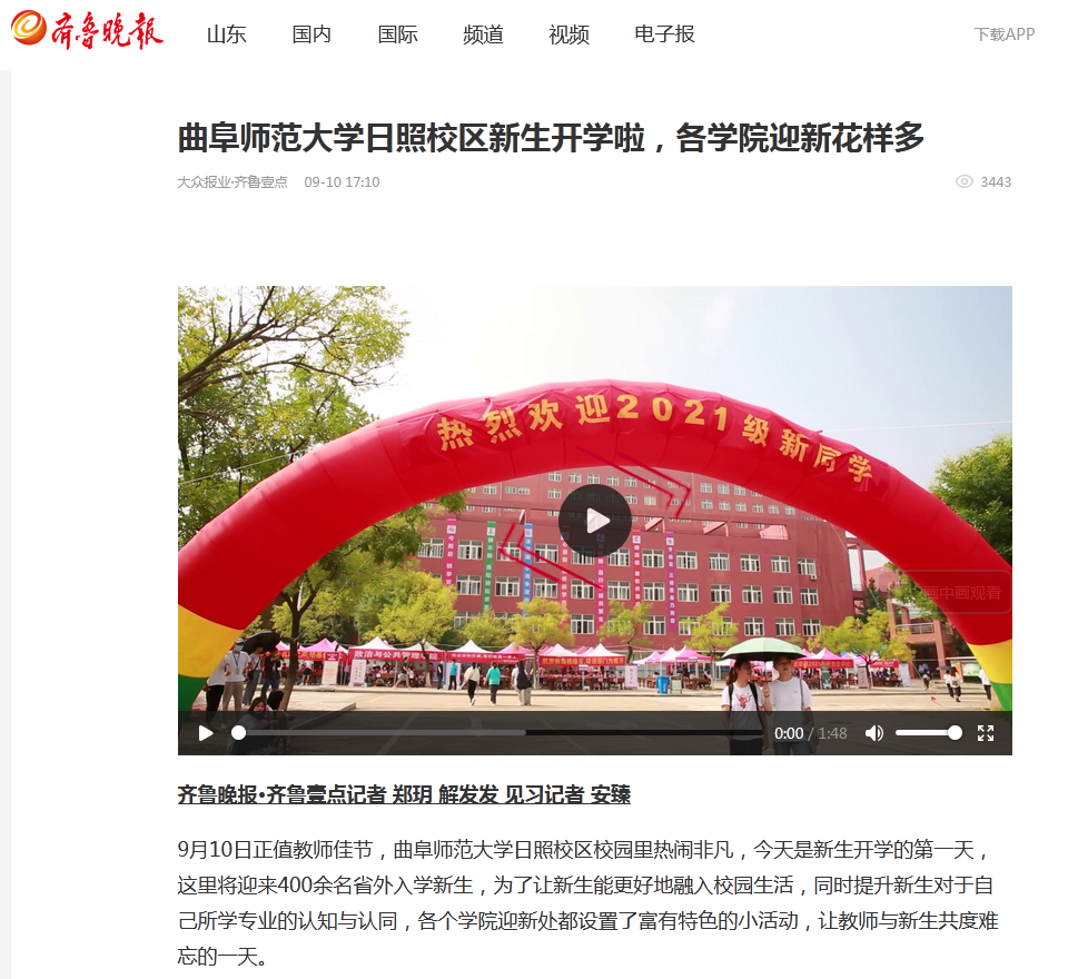 齐鲁晚报:完美体育(中国)官方网站新生开学,各学院迎新花样多