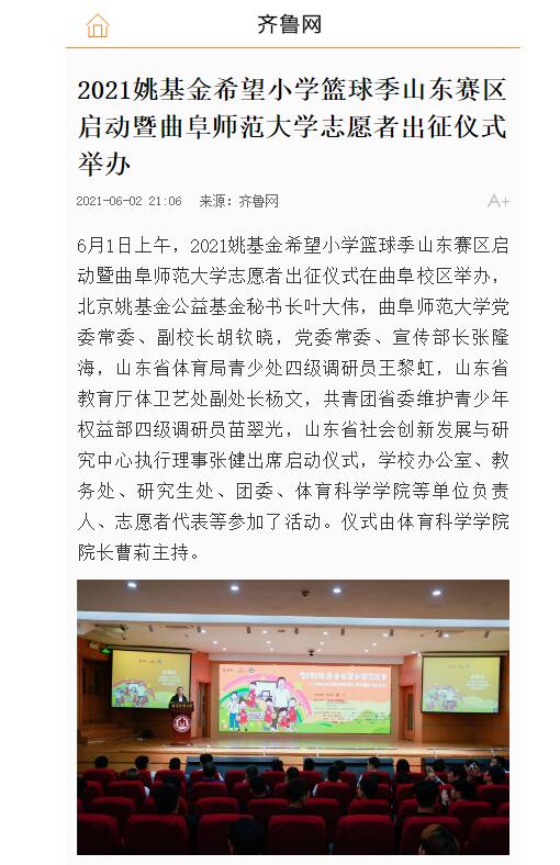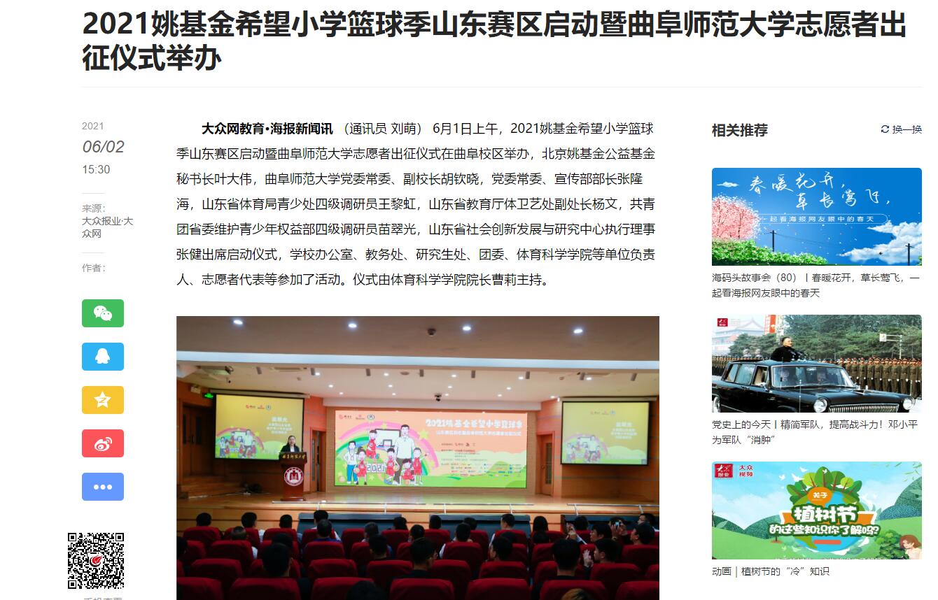 大众网:2021姚基金希望小学篮球季山东赛区启动暨完美体育(中国)官方网站志愿者出征仪式举办