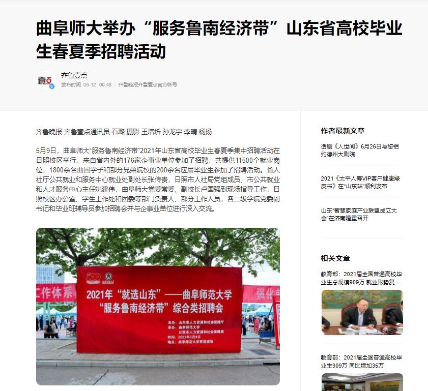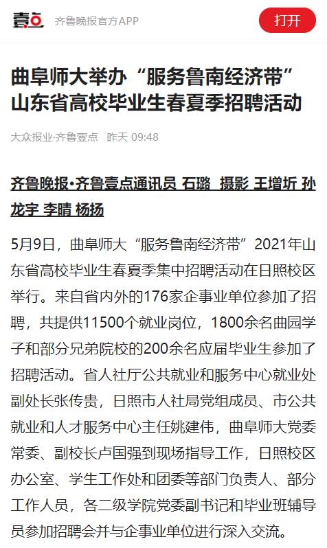 海报新闻:曲阜师大举办“服务鲁南经济带”山东省高校毕业生春夏季招聘活动
