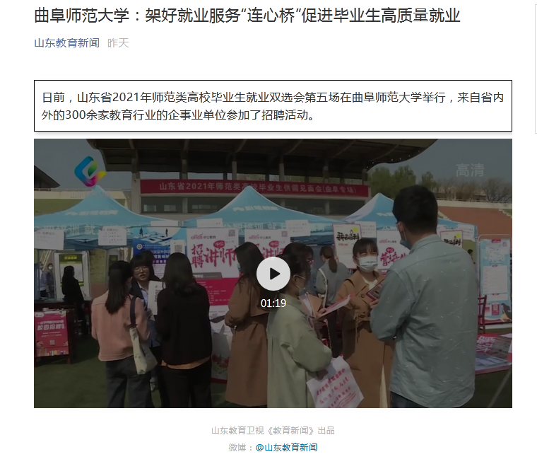 山东教育卫视:完美体育(中国)官方网站架好就业服务“连心桥”促进毕业生高质量就业