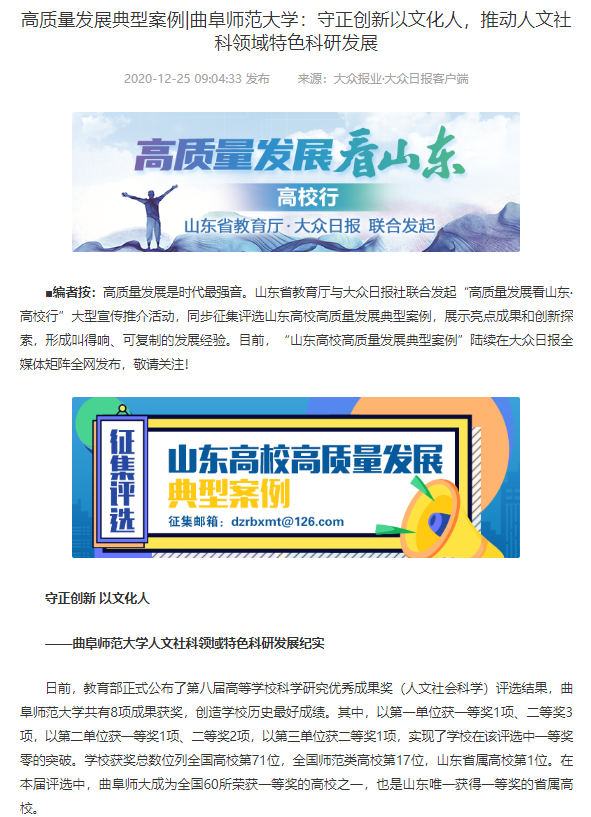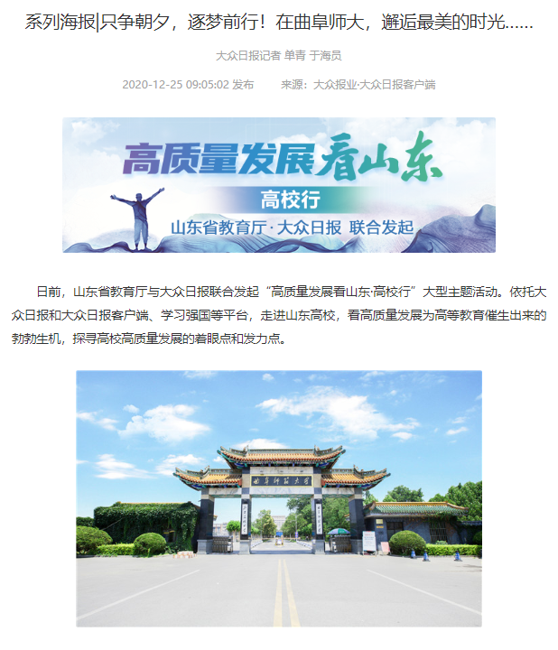 大众日报连续七篇报道!曲阜师大用高质量发展交出亮眼成绩单!