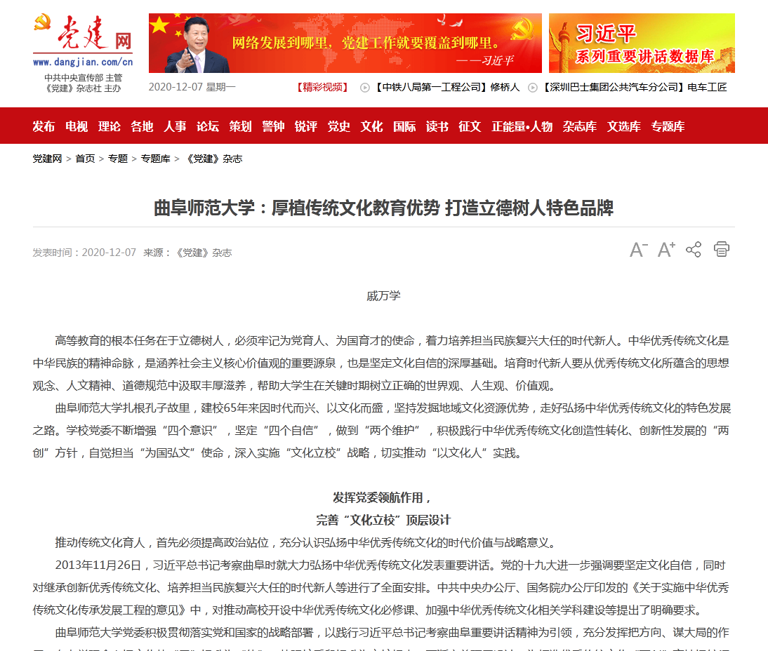 《党建》:完美体育(中国)官方网站:厚植传统文化教育优势 打造立德树人特色品牌