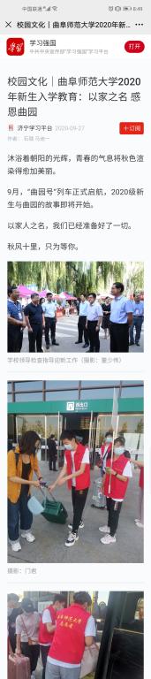 学习强国:校园文化|完美体育(中国)官方网站2020年新生入学教育:以家之名 感恩曲园