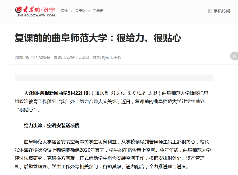 大众网:复课前的完美体育(中国)官方网站:很给力、很贴心