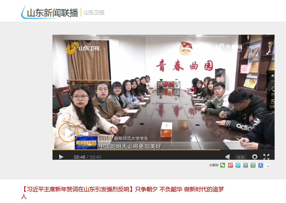 山东新闻联播:曲园学子第一时间聆听学习习近平主席新年贺词