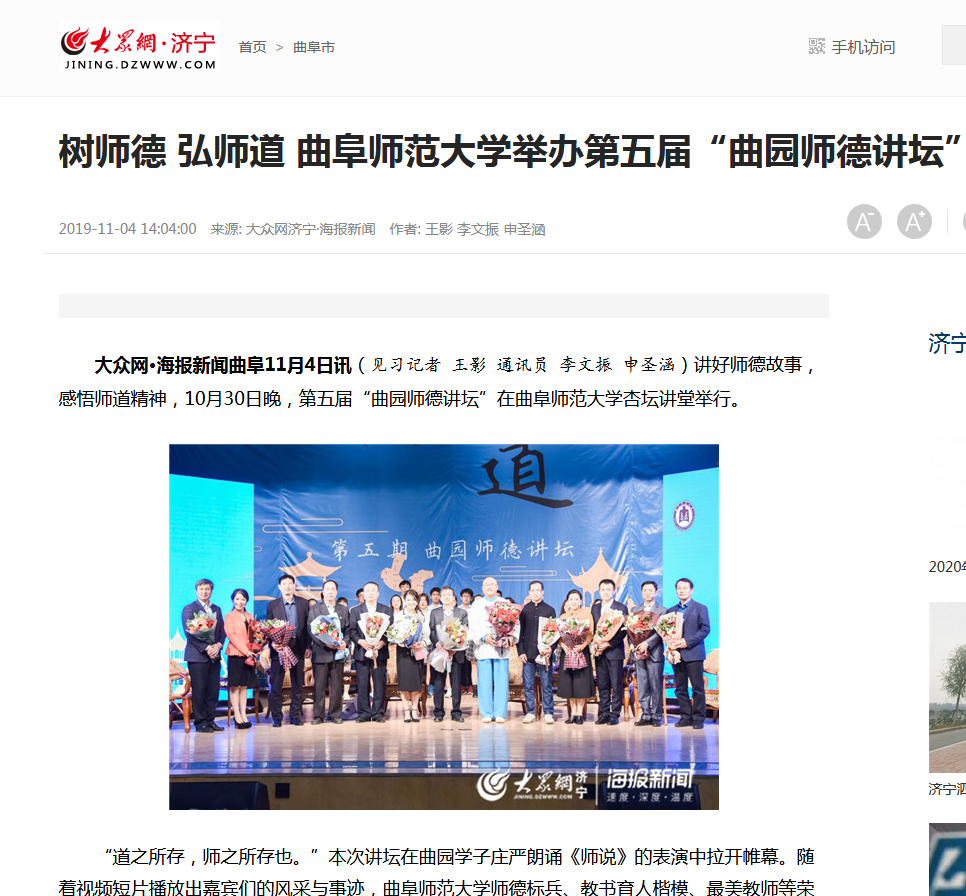 大众网:完美体育(中国)官方网站举办第五届“曲园师德讲坛”
