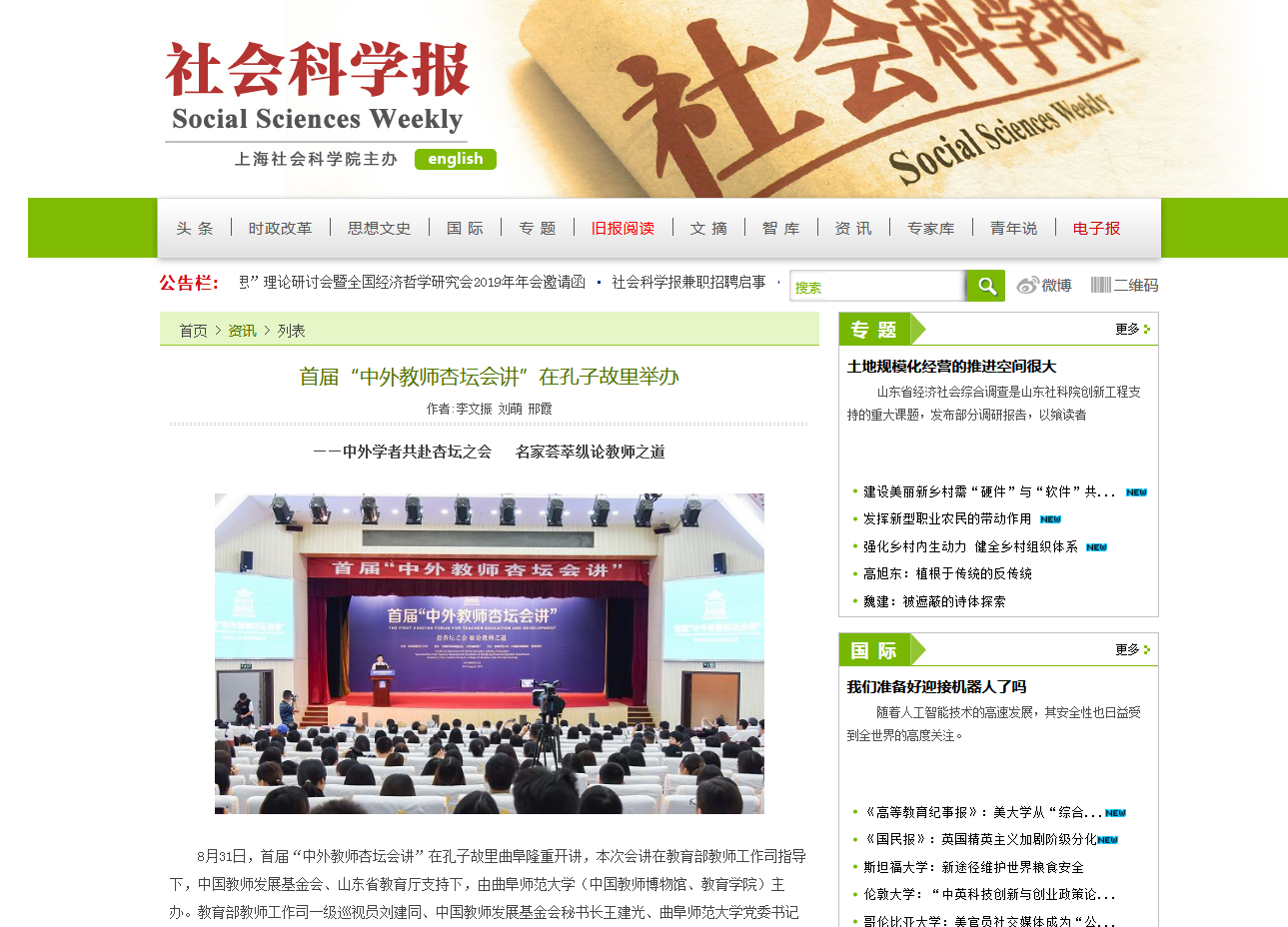 社会科学报:首届“中外教师杏坛会讲”在孔子故里举办