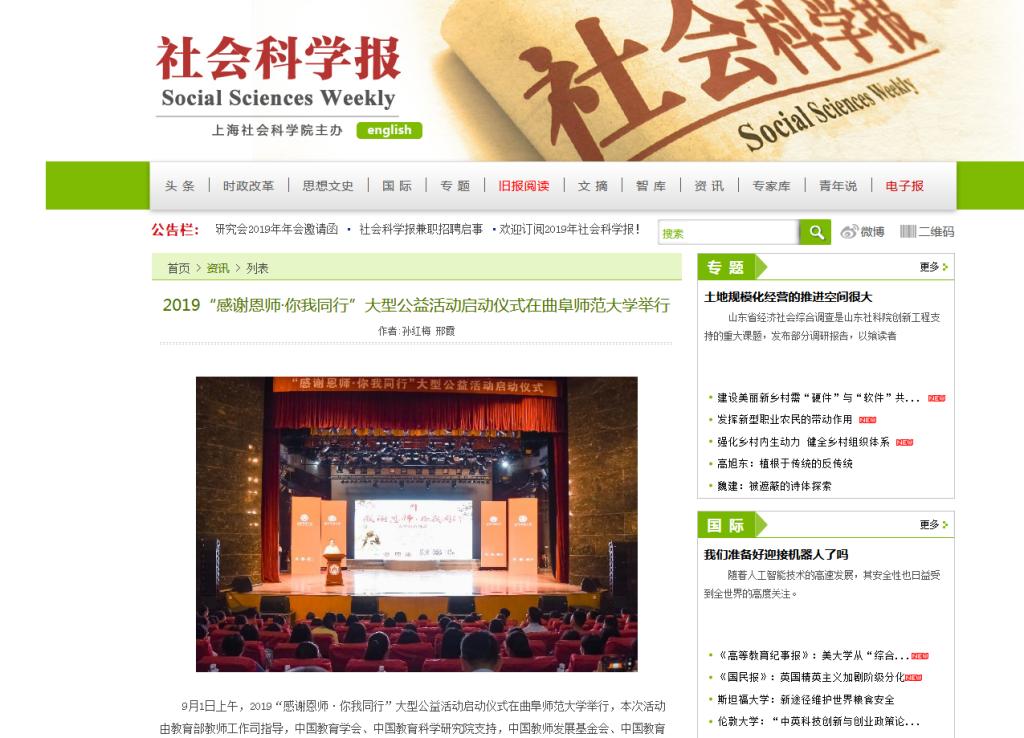 社会科学报:2019“感谢恩师·你我同行”大型公益活动启动仪式在完美体育(中国)官方网站举行
