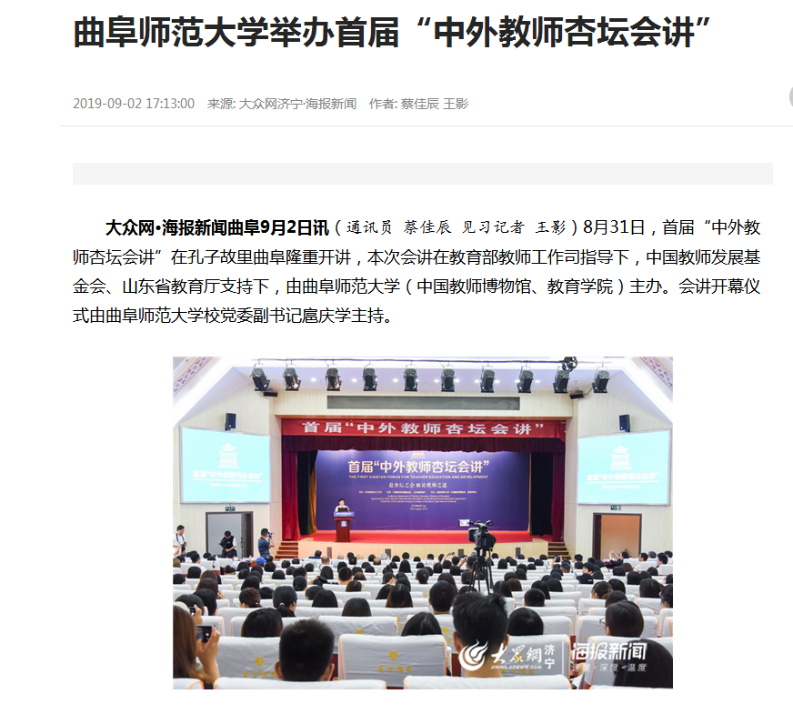 大众网:完美体育(中国)官方网站举办首届“中外教师杏坛会讲”