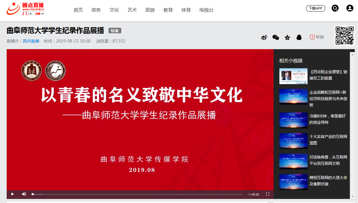 《以青春的名义致敬中华文化——完美体育(中国)官方网站学生纪录作品展播》链接地址:http://www.chinalink.tv/live/119709.html