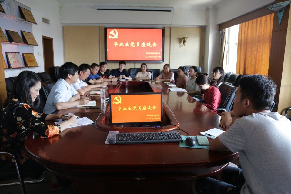 毕业生党员踊跃发言,他们对学院给予的关心和帮助表示感谢,并结合在校期间的学习生活体会,对学院的党建活动、思想教育、党员培养等工作提出了意见和建议。