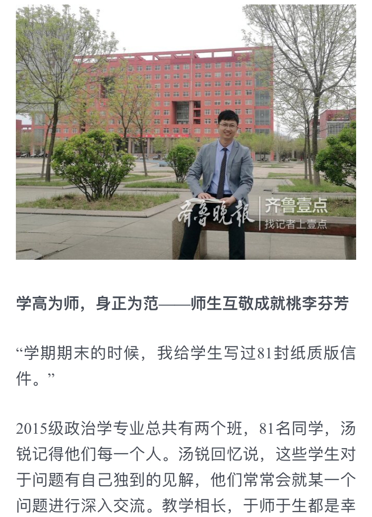 齐鲁晚报·齐鲁壹点报道我校思政课教师汤锐副教授