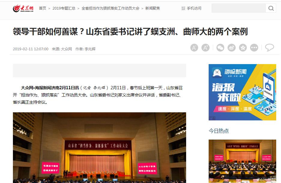 大众网:山东省委书记讲了蜈支洲、曲师大两个案例
