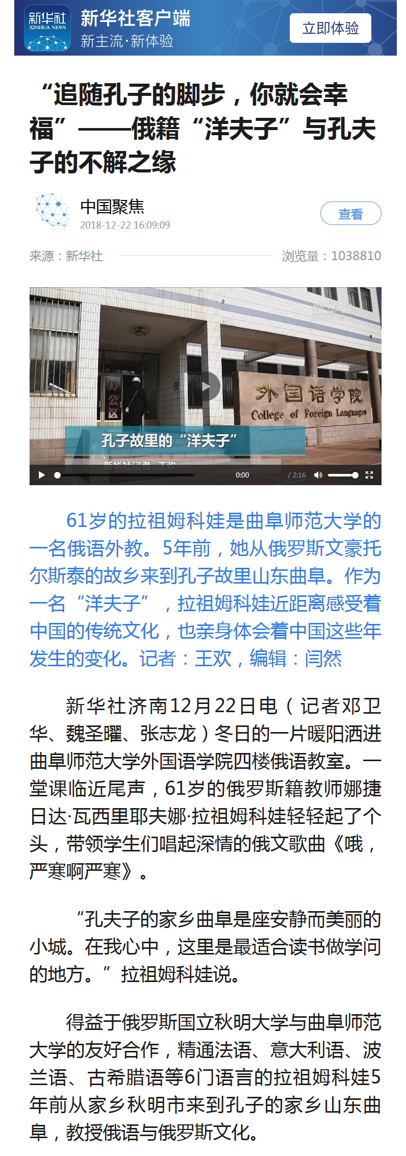 新华社:俄籍“洋夫子”与孔夫子的不解之缘
