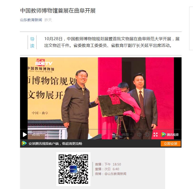 山东教育新闻:中国教师博物馆首展在曲阜开展