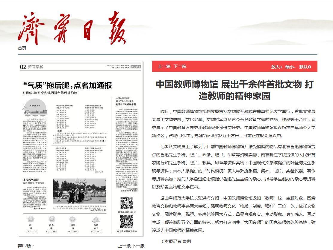 济宁晚报:中国教师博物馆 展出千余件首批文物 打造教师的精神家园