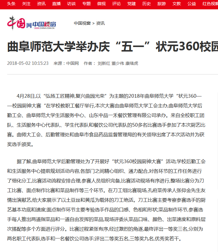 中国网:完美体育(中国)官方网站举办庆“五一”状元360校园厨神大赛