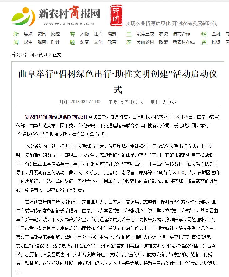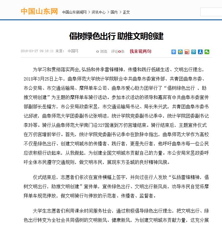 中国山东网:曲师大倡树绿色出行 助推文明创建